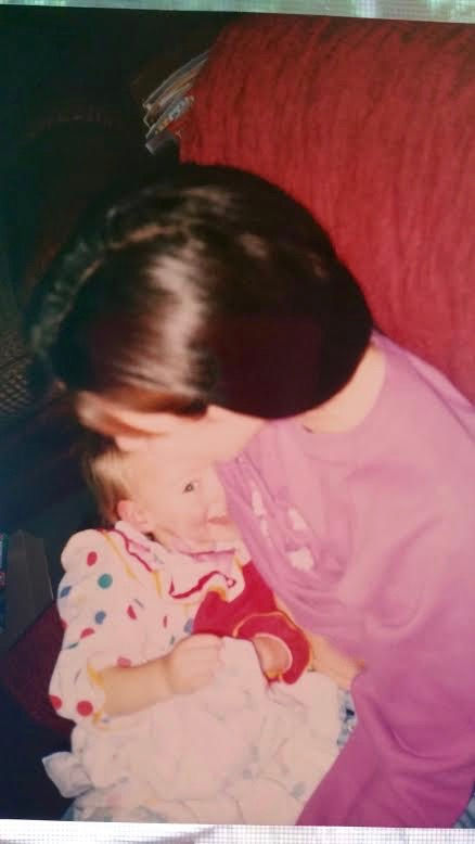 That's me, a few hours after giving birth to Rox 20 years ago! Lex is meeting her sister for the first time!